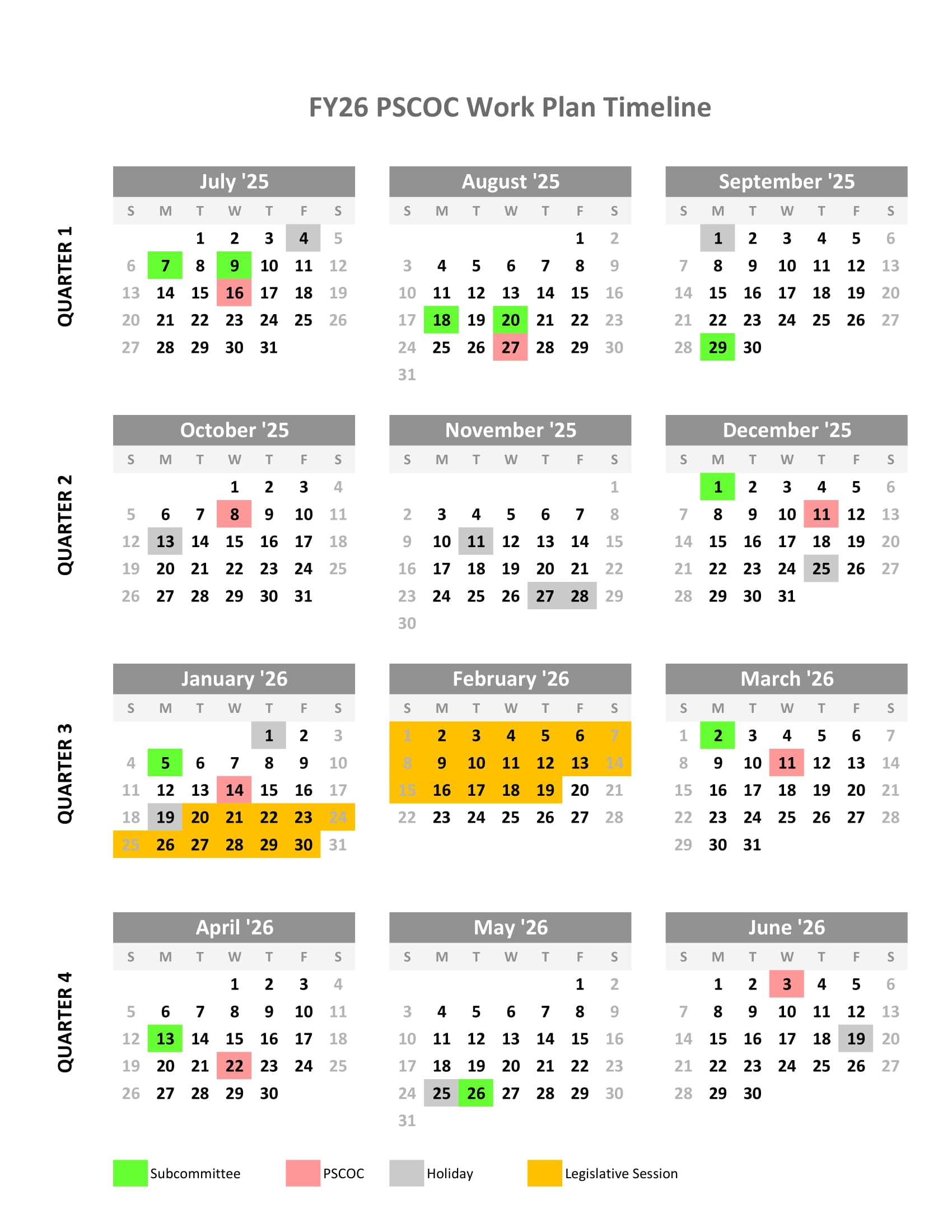 | Month | External Materials Due Date | PSCOC Meeting Date |