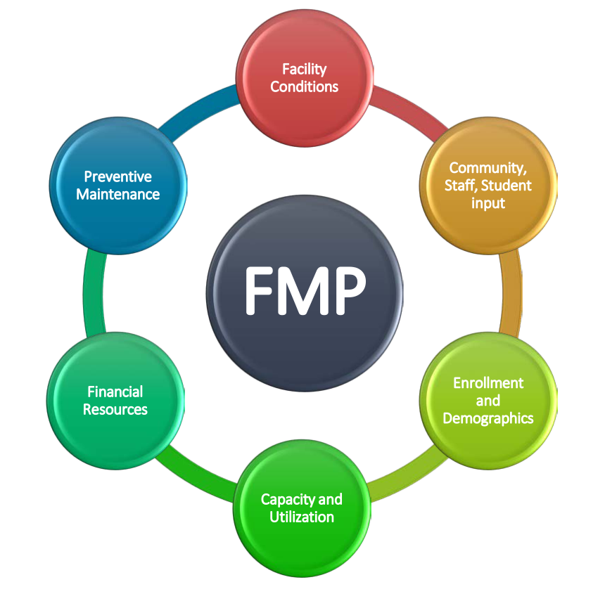 A Facilities Master Plan (FMP) is a strategic tool the district and/or state-chartered charter school uses to identify condition, building systems, demographic, and capacity issues in a district or school. Based on data and community input, it prioritizes critical projects the district or charter school should undertake to keep their educational spaces functional, comfortable, and usable so that the educators and students can thrive in their school buildings.